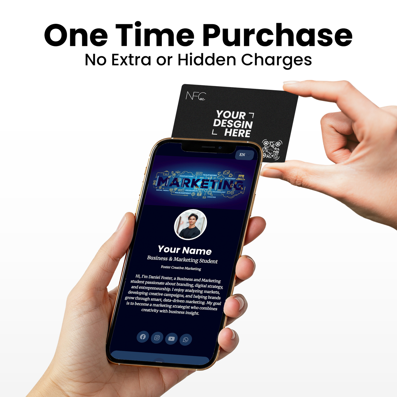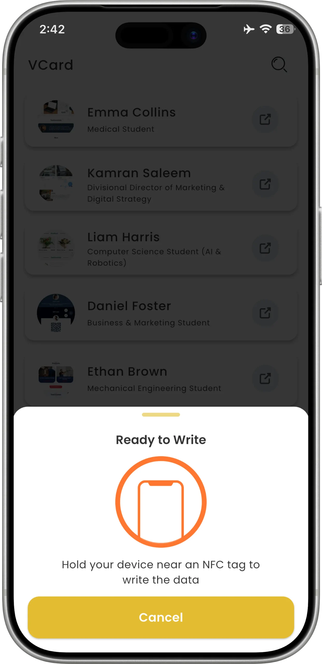 Instantly share who you are with a simple tap.